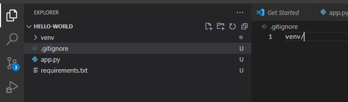 Because we’re also holding a venv folder, we should also create a .gitignore file which tells git to ignore certain folders. The file content can look as simple as this: